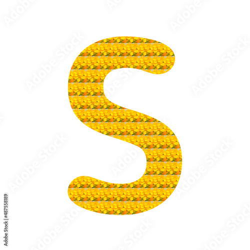 © DEEP, Naklejka premium Letter S in the form of yellow mustard flower isolated on white. Alphabet.