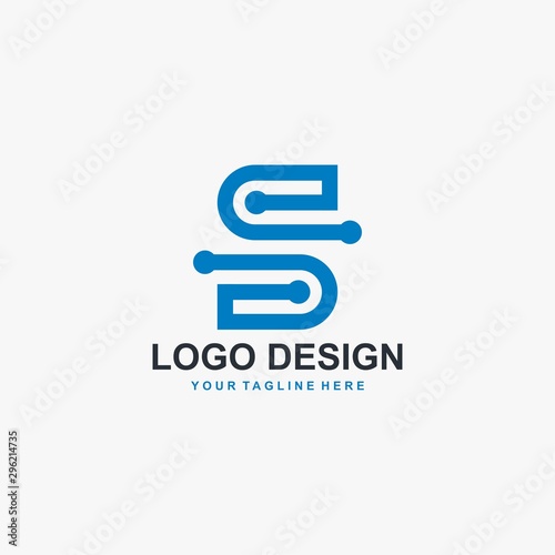 © DYNECREATIVE, Fototapeta premium Letter S logo design vector. Blue outline S type abstract symbol. Dot S vector icon.