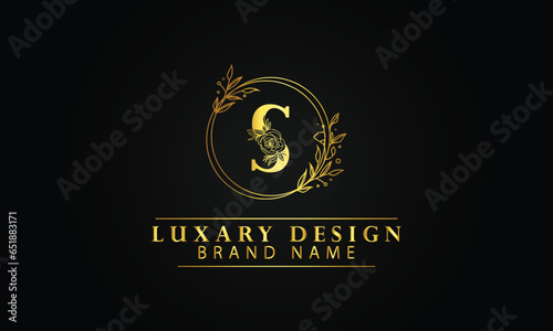 © designer, Naklejka premium Letter S luxury circle flourish shape logo design template with black background