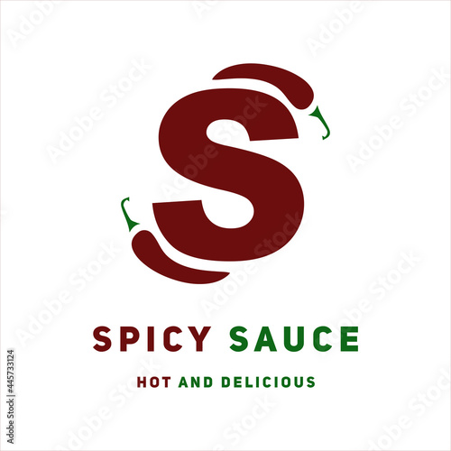 © restu, Fototapeta premium Letter S Spicy sauce logo template design with a chilli. Vector illustration.