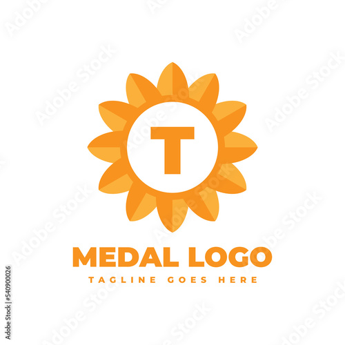 Naklejka premium letter T flower medal vector logo design element