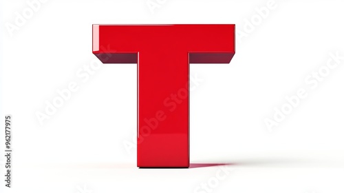 © Igbal, Obraz premium Letter "T" in 3D, on white background, from the alphabet, Red
