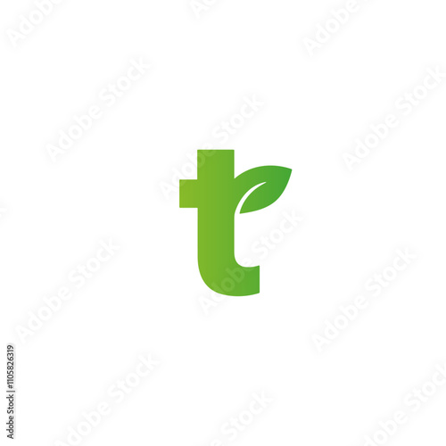 © Heisenberg1992, Obraz premium Letter T leaf icon flat vector design