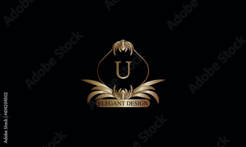 Fototapeta premium Letter U emblem calligraphic monogram template. Luxury elegant logo design....