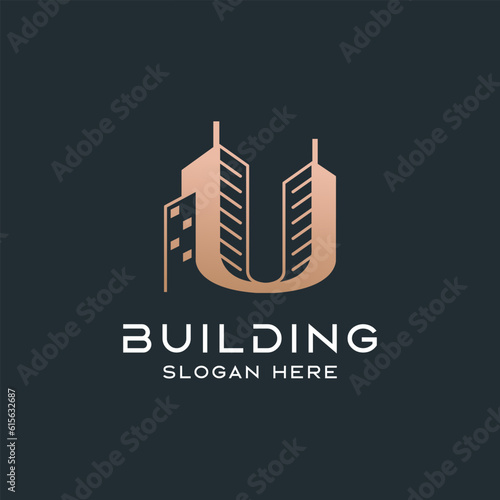 Obraz premium Letter U with building elements vector logo design template.