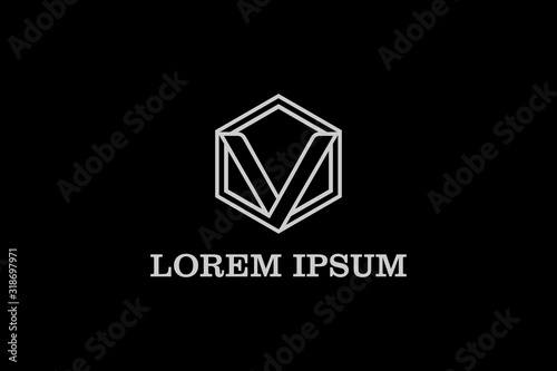 © infernal kiss, Naklejka premium letter V with a hexagon shape vector logo template