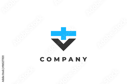 Obraz premium letter v with plus hospital symbol modern minimalist logo