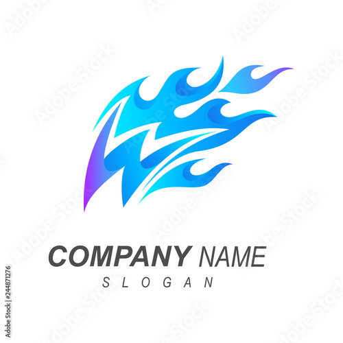 © Amelia, Fototapeta premium letter w with blue fire logo design template