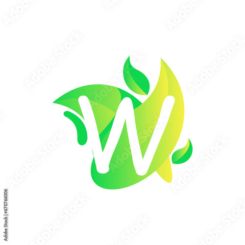 Obraz premium Letter W with fresh leaf gradient logo design vector