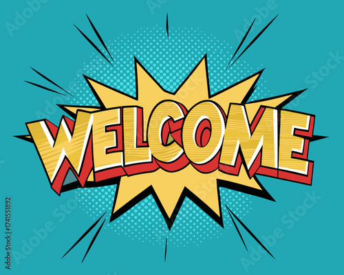© MD Shohel Rana, Fototapeta premium lettering--Welcome--pop art comic book background-