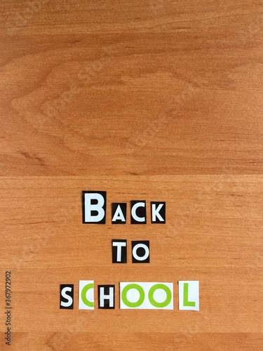 © Olena, Obraz premium letters “back to school” cut from a magazine on a wooden background