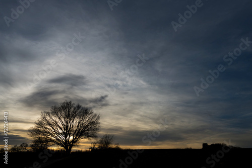 Fototapeta premium Letztes Licht des Tages, Baum und Felder Marburg