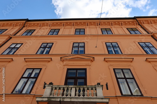 © christiane65, Obraz premium Leuchtend orange Altbaufassade in Ljubliana