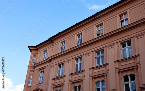 Fototapeta premium Leuchtend orange Altbaufassade in Ljubliana