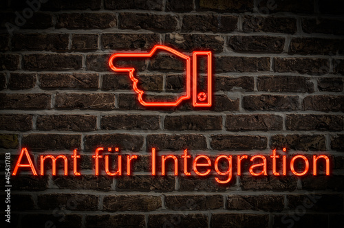 © Gehkah, Fototapeta premium Leuchtreklame Amt für Integration
