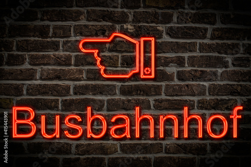 © Gehkah, Fototapeta premium Leuchtreklame Busbahnhof
