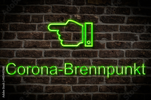 Fototapeta premium Leuchtreklame Corona-Brennpunkt