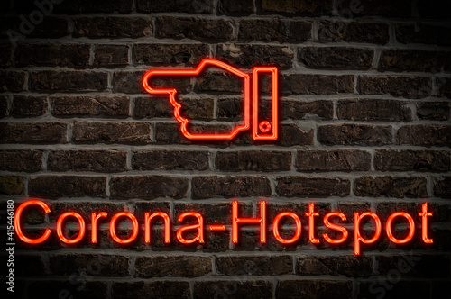 © Gehkah, Fototapeta premium Leuchtreklame Corona-Hotspot