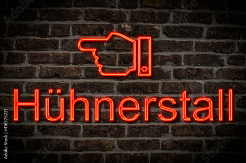 © Gehkah, Fototapeta premium Leuchtreklame Hühnerstall