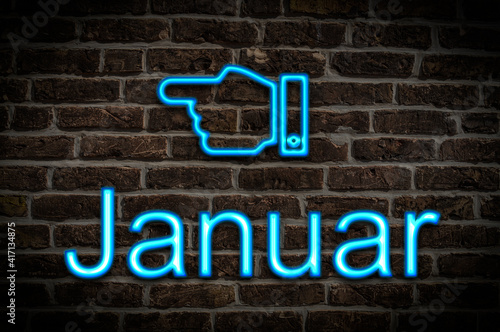 © Gehkah, Fototapeta premium Leuchtreklame Januar