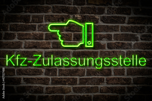 © Gehkah, Fototapeta premium Leuchtreklame KFZ-Zulassungsstelle