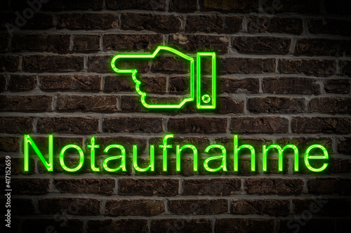 © Gehkah, Fototapeta premium Leuchtreklame Notaufnahme