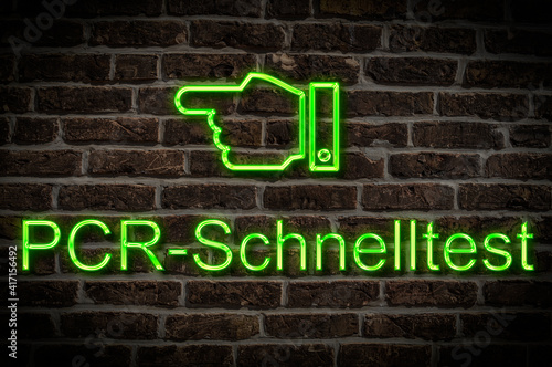 © Gehkah, Fototapeta premium Leuchtreklame PCR Schnelltest