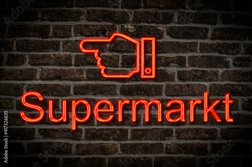© Gehkah, Fototapeta premium Leuchtreklame Supermarkt