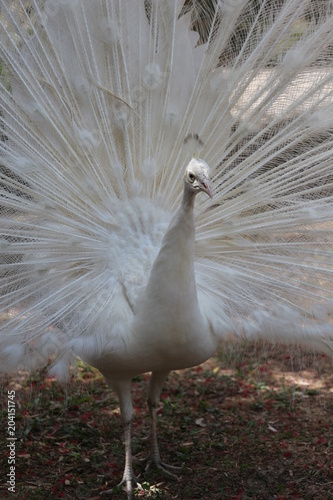 Obraz premium Leucistic Peacock Spreading His Tail Feathers