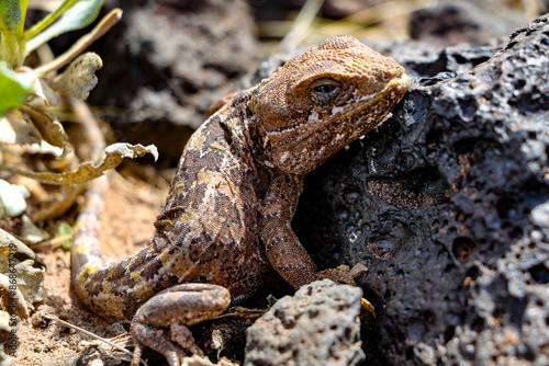 © carlos, Obraz premium Leusaurio belli, lagartija captando energía del sol