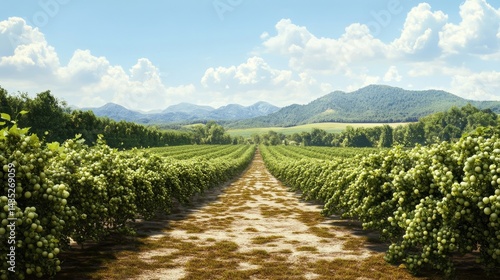 © Johannes, Naklejka premium level lines of currants plantation, natural fruit products.