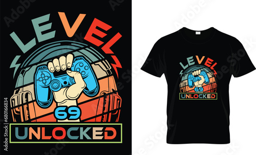 Naklejka premium Level 69 Unlocked, custom funny game t shirt