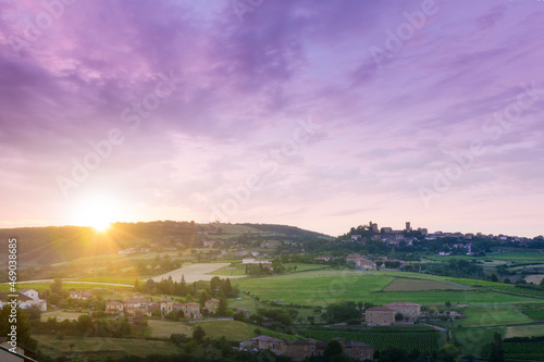Obraz premium Lever du jour à Oingt, Village des Pierres Dorées, Beaujolais