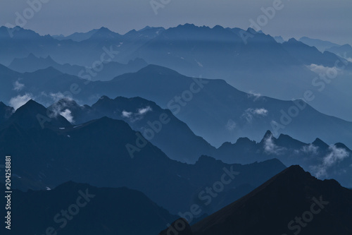 Naklejka premium Lever et coucher de soleil sur les Pyrénées