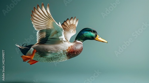 © vanilnilnilla, Obraz premium Levitating Duck Pieces Defying Gravity in a Minimalist Studio Composition