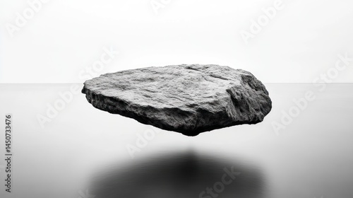 © Danang, Fototapeta premium Levitating rock on grey background, monochrome studio shot.