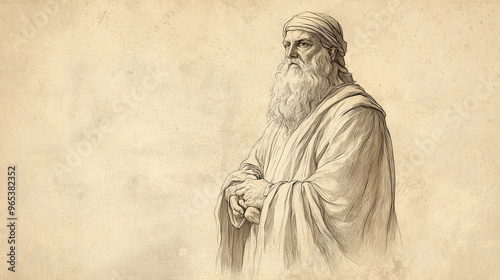 © T Studio, Fototapeta premium Leviticus Ritual: Israelite Sacrifices and Dedicates to Obedience, Determined Expression, Biblical Illustration, Bible Wall Art, Beige Background