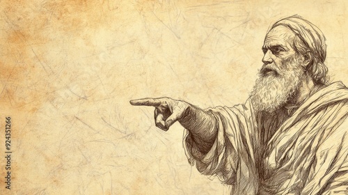 © T Studio, Fototapeta premium Leviticus Scene: Israelite Sacrificing and Dedicating to Obey God's Commandments, Determination, Biblical Illustration, Bible Wall Art, Beige Background