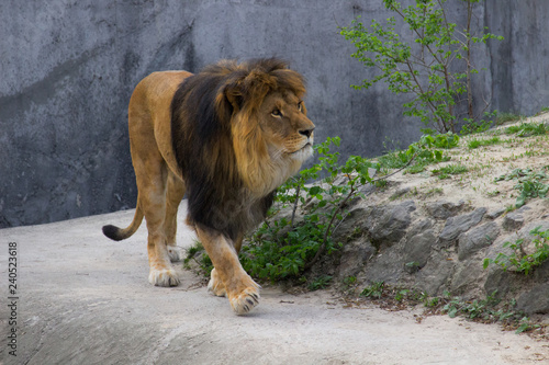 Naklejka premium Lew spacerujący w letni dzień