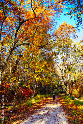 © Feng, Fototapeta premium Lexington, Massachusetts, USA: 10 25 2025: The fall foliage red leaf landscape Minute Man National Historical Park at Massachusetts, USA. It commemorates the battle in the American Revolutionary War
