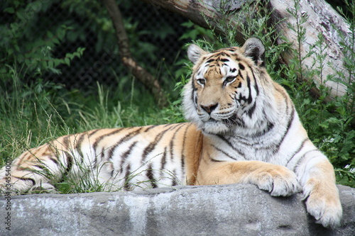 © Stefan, Naklejka premium leżący tygrys z podniesioną głową