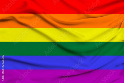 Fototapeta premium LGBT rainbow flag, Pride flag, Freedom flag - the international symbol of the lesbian, gay, bisexual and transgender community, the concept of the human rights movement