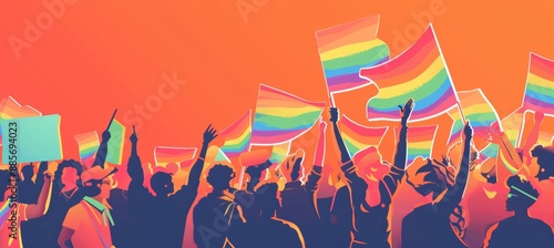 Obraz premium LGBTQ Rights Protest with Vibrant Rainbow Flags - Unity and Equality Concept for Posters