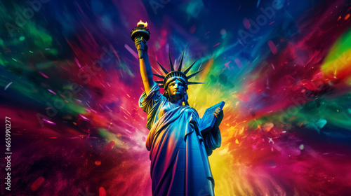 Fototapeta premium LGBTQ+ Statue of liberty with flag