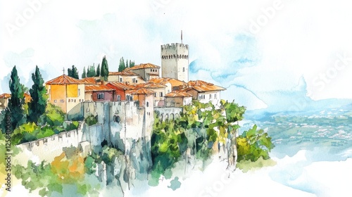 Fototapeta premium Liberation Day San Marino Charming hilltop village with ancient castle and scenic views - ideal for travel and architectural inspiration