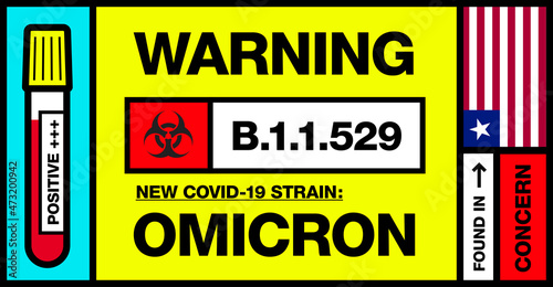 © ckybe, Fototapeta premium Liberia. Covid-19 New Strain Called Omicron. Found in Botswana and South Africa. Warning Sign with Positive Blood Test. Concern. B.1.1.529.