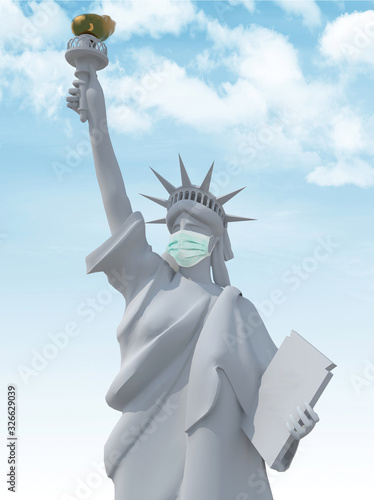 Fototapeta premium liberty sculpture with surgeon mask