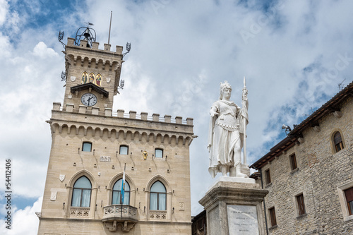 © mikeng, Fototapeta premium Liberty statue and public palace, San Marino republic,