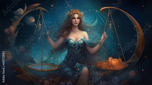 © Filip, Fototapeta premium Libra Zodiac horoscope sign symbol, icon, background wallpaper design, astrology art, Generative AI