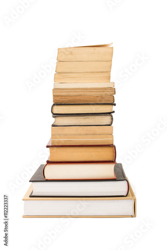 Fototapeta premium Libros apilados con fondo blanco aislado. Vista de frente